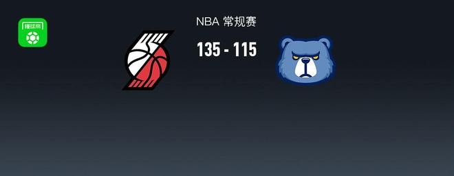 第一节开拓者罗伯特-威廉姆斯三世拿下7分,灰熊GG-杰克逊拿下6分,首节战罢开拓者25-36落后灰熊 第二节开拓者格兰特拿下12分,灰熊凯姆-斯宾塞拿下5分,半场结束开拓者68-64领先灰熊 第三节开拓者朱-霍勒迪拿下8分,灰熊GG-杰克逊拿下5分,第三节结束开拓者106-87领先灰熊 第四节开拓者吕佩尔拿下12分,灰熊普罗斯珀拿下5分,最终开拓者135-115战胜灰熊