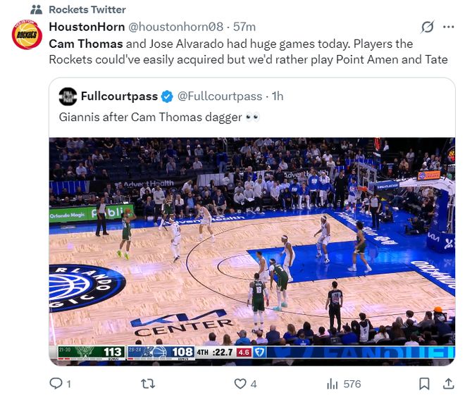 休媒赛后转发了托马斯超远三分的瞬间写道:原本我们有机会签下托马斯这样的得分手,但乌度卡更愿意使用阿门、泰特这样的防守者都不愿意签得分手。 |