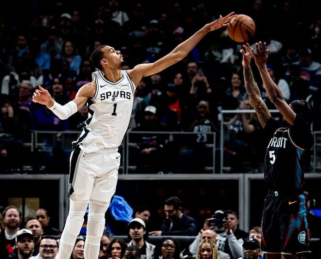 马刺队114-103活塞队,文班亚马狂轰21分+17篮板+4助攻+6盖帽 在马刺队VS活塞队的比赛中,康宁汉姆手感低迷,26投仅5中,贡献16分+6篮板+10助攻,杜伦爆砍25分+14篮板,活塞队在一度落后15分的情况下顽强反扑,却还是难逃一败。马刺队这边,瓦塞尔攻下28分+4助攻+7记三分球,卡斯尔贡献16分+11助攻,文班亚马更不讲理!他出战35分钟,16投6中(三分球5中2),罚球8中7,狂轰21分+17篮板(8个前场篮板)+4助攻+6盖帽的全面数据。据统计,文班亚马是马刺队史第3位单场至少砍下20分15板8前板5帽的球员,前2位分别是邓肯(3次)和大卫罗宾逊(3次)。