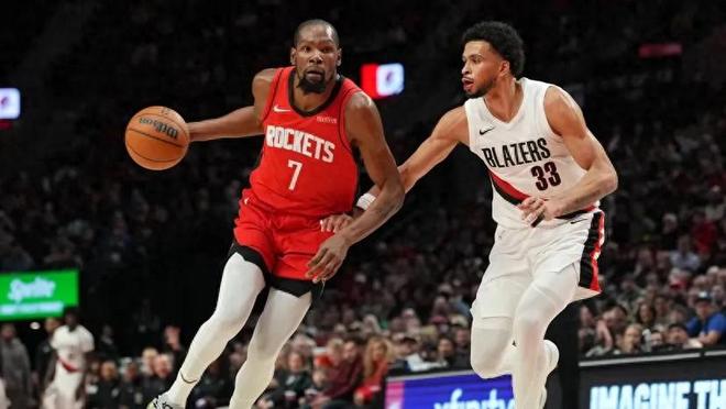 8失误+末节仅6分!杜兰特低迷,火箭末节一波流10699逆转开拓者
