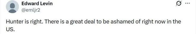 “亨特说得对。当下的美国确实有太多令人羞愧的事情。”↓