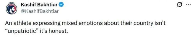 “运动员表示对他们的国家感情复杂,并非‘不爱国’,而是诚实(的表达)。”↓