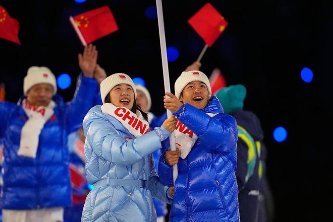 当地时间2月6日,张楚桐和宁忠岩(右)作为中国代表团旗手在2026年冬奥会开幕式上入场。 2026年米兰冬奥会开幕式上,宁忠岩成为了中国代表团的旗手,作为目前中国速度滑冰队的领军人物之一,宁忠岩颇为激动,他表示:“这是一份光荣和自豪,也是对我们速度滑冰项目的一个肯定。” 如今,宁忠岩在米兰冬奥会速度滑冰男子1000米比赛摘得铜牌,他将带着这份底气,冲击主项1500米。 |