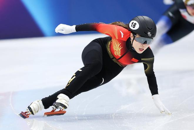 公俐。 全能战士 尽管在中长距离和接力项目上已站稳脚跟,公俐却拒绝被简单定义为“长距离选手”。2024-2025赛季,她开始有意识地在短距离项目上寻求突破。 “我觉得运动员没有什么‘你是属于哪个项目’的定义,”她认为,“其实各个项目都可以去掌握去尝试,不过是相对来说更擅长于某一项。” 这种突破的尝试伴随着艰苦的学习过程。2024年北京世锦赛500米比赛,公俐从排名靠后的第五道出发,历经两轮复活赛的鏖战杀入1/4决赛,最终虽止步于此,但过程的收获远大于结果。 “这赛季我也是第一次尝试500米,我觉得已经很满意了。”她复盘道,“从第五道开始,能够跟上大部队,后面需要的是做更多的超越。”在她看来,短距离项目不仅要求速度,更需要在高速滑行中瞬间决策、选择路线,“这是一个非常值得去锻炼的事情。” 这种不断突破自我边界的态度,让她在奥运资格赛的激烈竞争中脱颖而出。从加拿大蒙特利尔到荷兰多德雷赫特,四站世界杯系列赛,公俐与队友协同作战,帮助中国女队实现冬奥会女子项目满额参赛目标,并成功获得500米、1000米、1500米全部三个个人项目的冬奥资格。