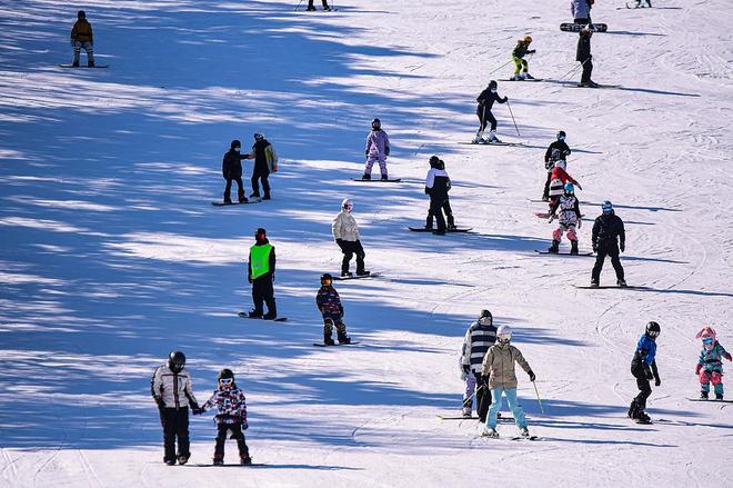 大量滑雪爱好者来到沈阳东北亚滑雪场滑雪。在冬奥会助推下,参与冰雪运动在中国已经成为冬季新时尚,冰雪经济更是由此火热“出圈”。视觉中国 图