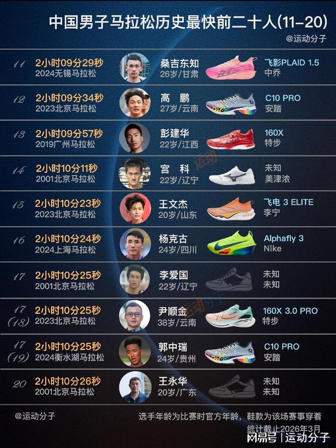 最新国家纪录创造者丰配友领衔,盘点中国男子马拉松前20人