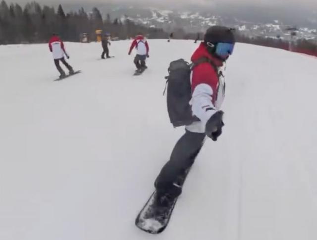 中国残奥单板滑雪教练员牛天然给《华夏时报》记者发来的滑雪第一视角视频显示,每一名运动员都背着物资包,里面装有滑雪的备用物品以及水,补充能量的食物等常用物品,大部分运动员身着红色的中国体育代表团服装,在雪道之上,他们如游鱼般灵动自如。