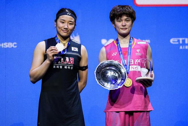 王祉怡斩获全英公开赛女单金牌。 难以逾越的大山,这次没挡住她 对于所有女子羽毛球选手来说,韩国名将安洗莹都是一个强劲的对手。而对于王祉怡而言,安洗莹更是堪称一座难以逾越的大山。 在此之前,她已经遭遇了对阵这位韩国选手的10连败,包括去年的全英公开赛,王祉怡就是决赛倒在了安洗莹拍下,屈居亚军。 去年的年终总决赛,王祉怡又一次在决赛以1比2输给安洗莹,无缘金牌。那也是她赛季第8次在决赛中输给安洗莹。 彼时接受赛后采访时,王祉怡忍不住落泪,“真的太累了。其实打到第三局,自己还是很想去拼,可能是身体有点跟不上了,出现了失误,自己的速度和节奏都慢下来了。” “身体的确到了一个极点,有点跟不上比赛的强度,有点力不从心的感觉。前段时间在一些技战术上尝试做了一些改变,但在细节上还存在提升的空间。”