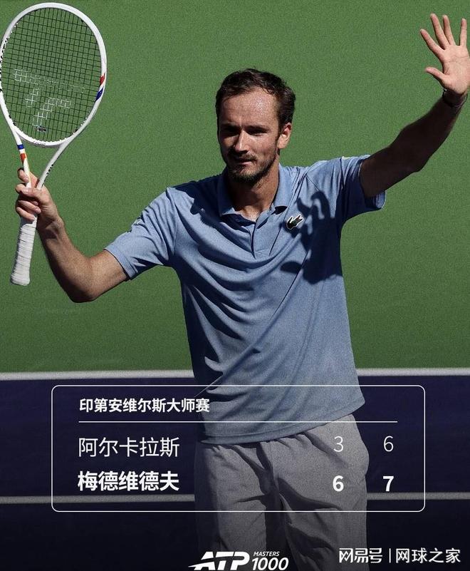 上半区半决赛,梅德维德夫表现堪称完美,发球在线,进攻极富侵略性,防守无处不在,竟然直落两盘战胜了赛季开局16连胜的世界第一阿尔卡拉斯。至此,现役全部五位印第安维尔斯大师赛前赛会冠军全军覆没,无人能够闯进最后决赛、捍卫昔日荣光。